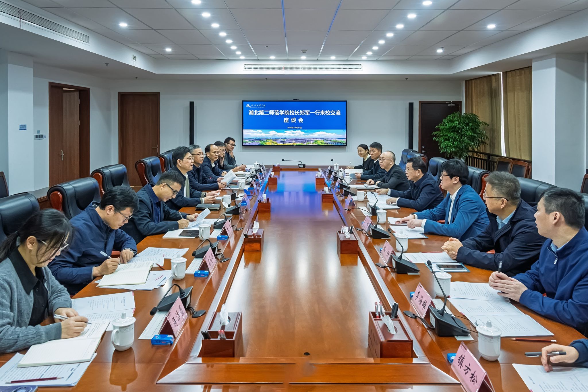 郑军介绍了湖北第二师范学院基本情况,并对我校的发展建设给予高度评价。他表示,要在学科建设、硕士点建设以及专业优化调整等方面借鉴我校的先进经验和做法,并希望我校给予支持和指导。