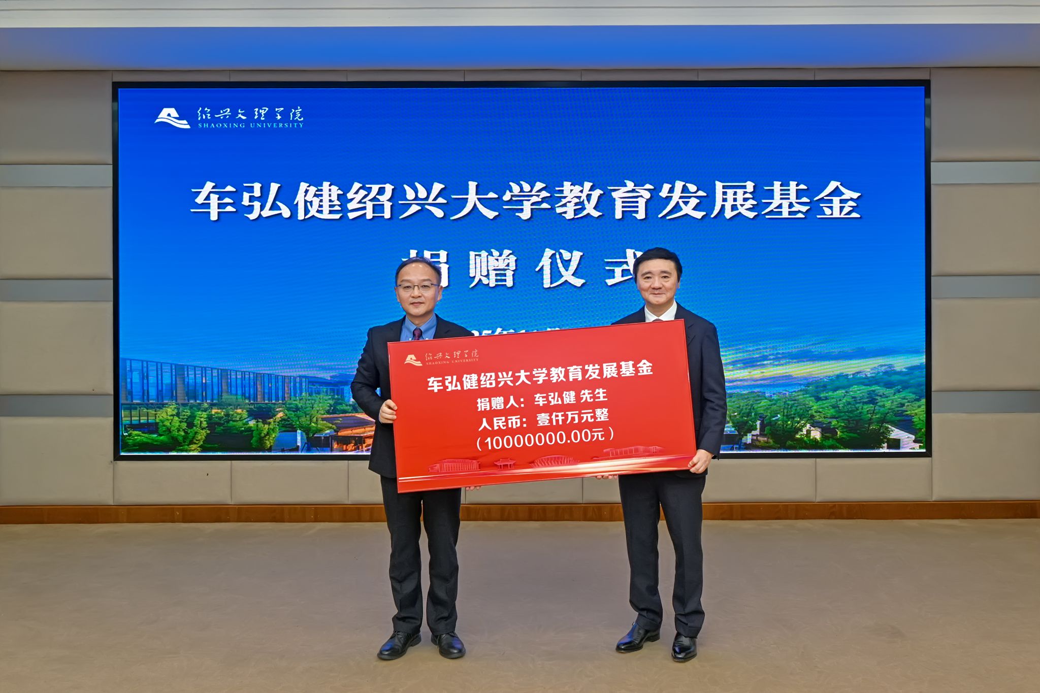 上世纪90年代初,车弘健先生的父亲车越乔先生等旅港乡贤怀着赤子之心为家乡教育事业奔走呼吁,积极向省政府建言筹建绍兴大学,并于1993年联合多位旅港委员提交《倡办绍兴大学培养建设家乡各类人才》的提案,为绍兴大学的构想播下了第一粒种子。1994年,车越乔先生率先慷慨捐资,带动了旅港乡贤捐资,在绍兴大地掀起全民捐资兴学的热潮,为绍兴文理学院的创建和发展奠定了坚实基础。2002年,在学校以车越乔父亲之名冠名的“恂如美术馆”落成之际,车越乔先生又将珍藏的吴昌硕、齐白石等名家的130余件珍贵字画无偿捐赠给学校,成为馆中熠熠生辉的“镇馆之宝”。在学校正全力冲刺更名大学与获批博士学位授予单位这“两大历史任务”之际,车弘健先生传承父辈善行,慷慨捐资1000万元,设立“车弘健绍兴大学教育发展基金”,用于支持学科专业建设、学术交流、基础建设和人才培养。