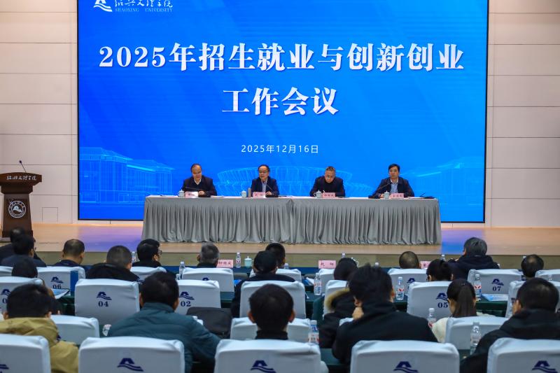 12月16日下午,学校在铁城科教馆报告厅召开2025年招生就业与创新创业工作会议,总结2025年工作成果,剖析当下形势,为2026年工作筑牢基础。校长赵阳,副校长柳国庆,党委副书记黄坚,党委委员、宣传部部长宋浩成出席,会议由黄坚主持。