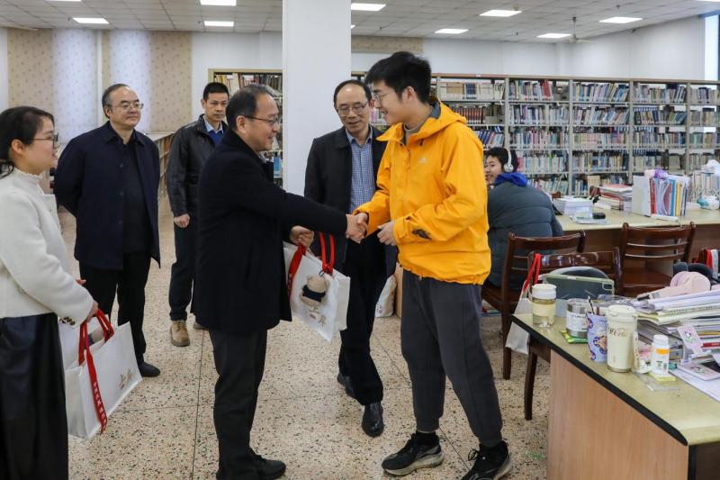 12月18日,校长赵阳、党委副书记黄坚专程走进图书馆、仲申书院考研教室,看望正在备战的2026届考研学子,为他们送去冬日的关深切关怀与学校的温暖祝福。办公室、学工部、图书馆等职能部处负责人陪同走访。