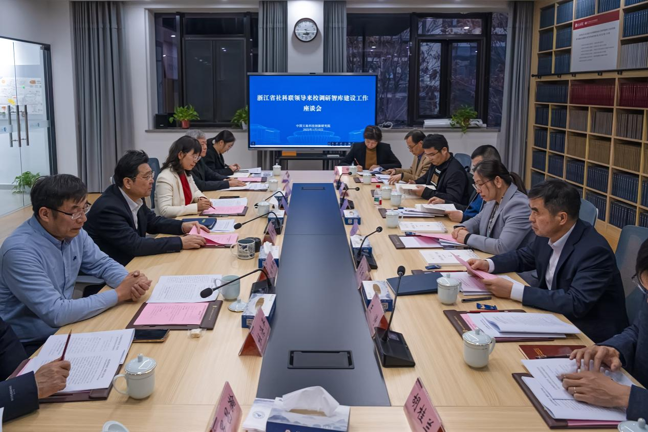 1月15日下午,浙江省社会科学界联合会党组成员、副主席屠春飞率队来校调研,考察国我校省哲社重点基地浙江省越文化传承与创新研究中心、中国文旅科技创新研究院心灵旅程实验室,就智库建设情况开展专题调研并召开座谈会。会议由校党委书记崔凤军主持。绍兴市社会科学界联合会党组书记、主席陈富根,省社科联科研管理处副处长(主持工作)宋朝阳、科研管理处副处长杜运潮,市社科联党组成员、副主席王涛,校人文社科处、马克思主义学院负责人,市社科联相关部门负责人及校部分智库负责人陪同调研并参加座谈。
