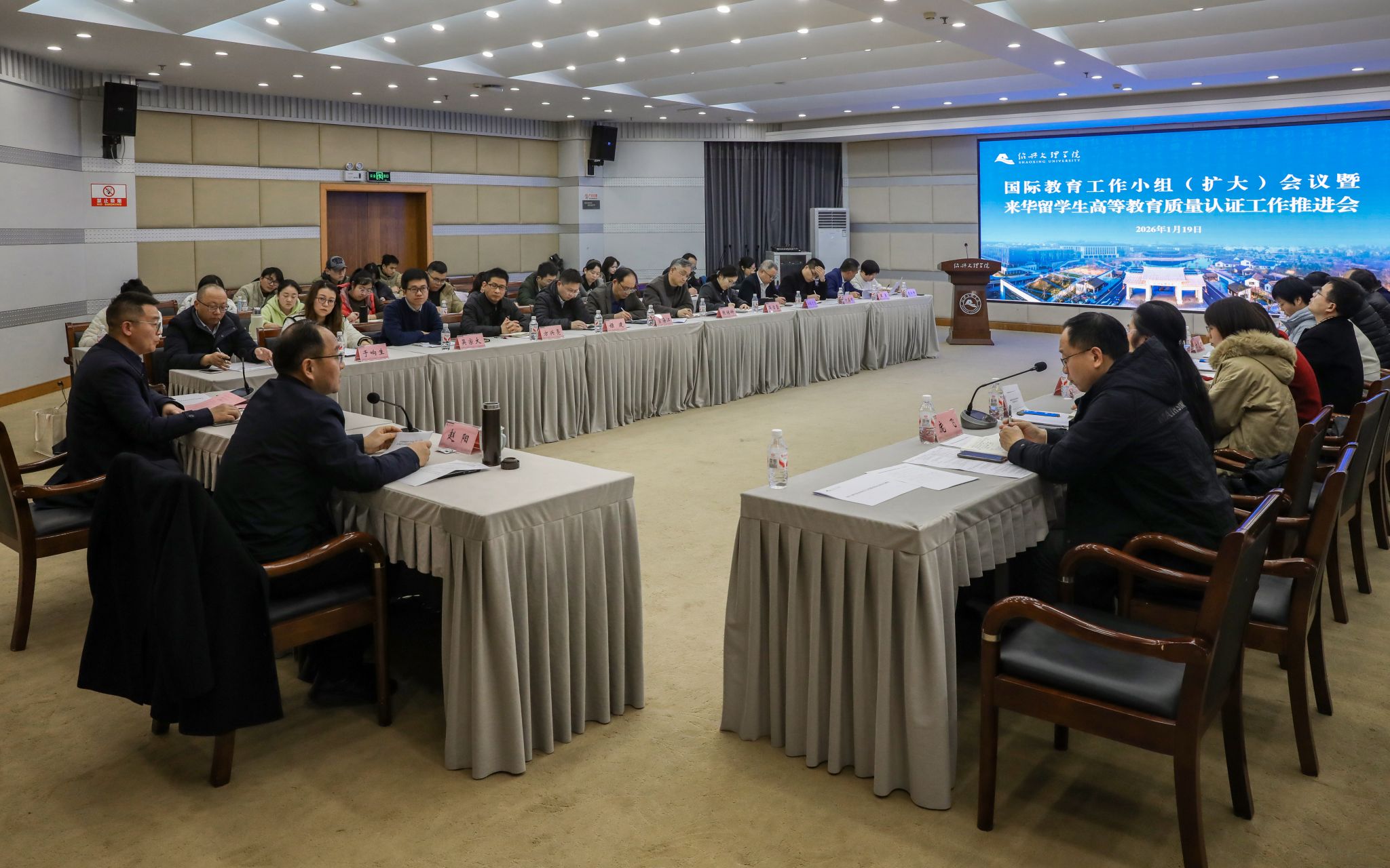 会上,国际教育学院负责人介绍了认证相关要求及2026年来华留学生重点工作安排;国际交流合作处、研究生院、教务处、保卫部等部门负责人作交流发言。