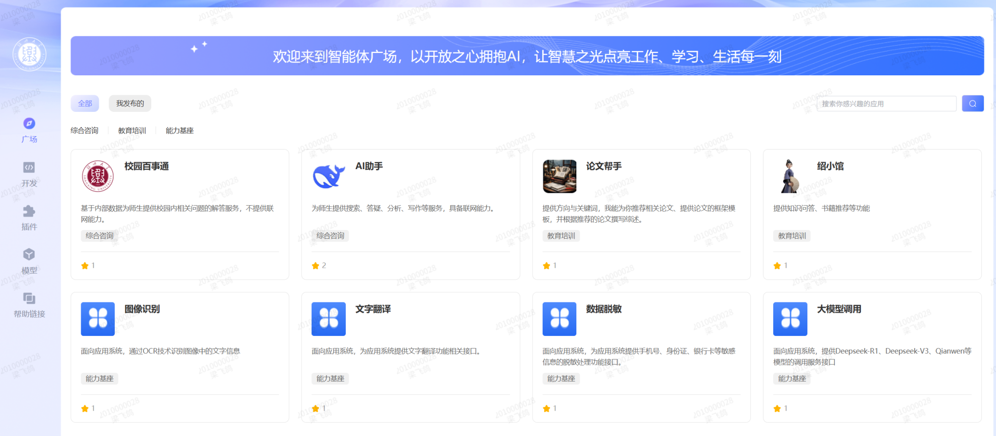 将智能体与核心组件封装为标准化API接口,面向各业务系统、科研团队、师生创新项目开放,提供自然语言处理、图像识别、知识检索等通用AI能力,打破技术壁垒,促进全校智能应用快速迭代与能力共享。