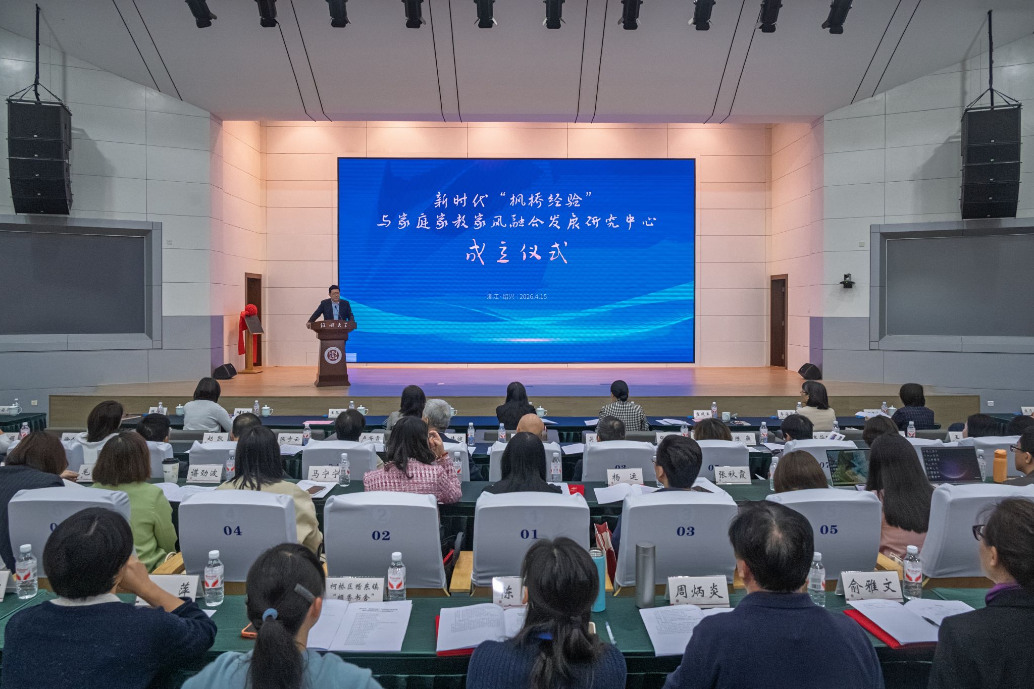 绍兴是“枫桥经验”的发源地,也是底蕴深厚的名士之乡。如何让“老法宝”在新时代焕发新活力?如何让“小家庭”成为基层治理的“稳压器”?4月15日,由浙江省妇联、绍兴市委、绍兴大学联合主办的新时代“枫桥经验”与家庭家教家风融合发展研究中心成立仪式在绍兴大学铁城科教馆举行。浙江省妇联党组书记、主席吴红梅,浙江省妇联党组成员、副主席、研究中心主任俞国娟,绍兴市委副书记、社工部部长、政法委书记王琴英,绍兴大学党委书记崔凤军,北京师范大学教授边玉芳出席成立仪式。仪式由副校长陈均土主持。