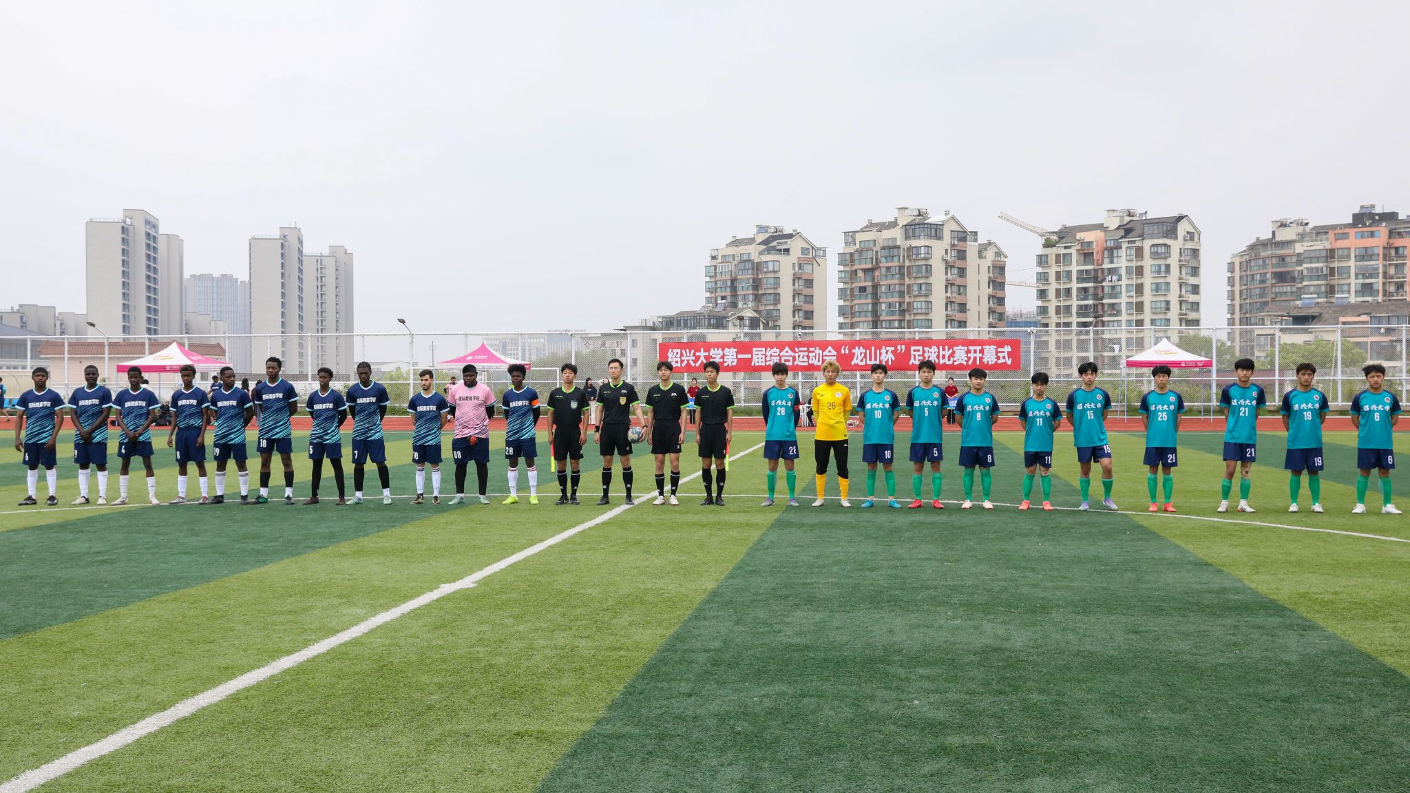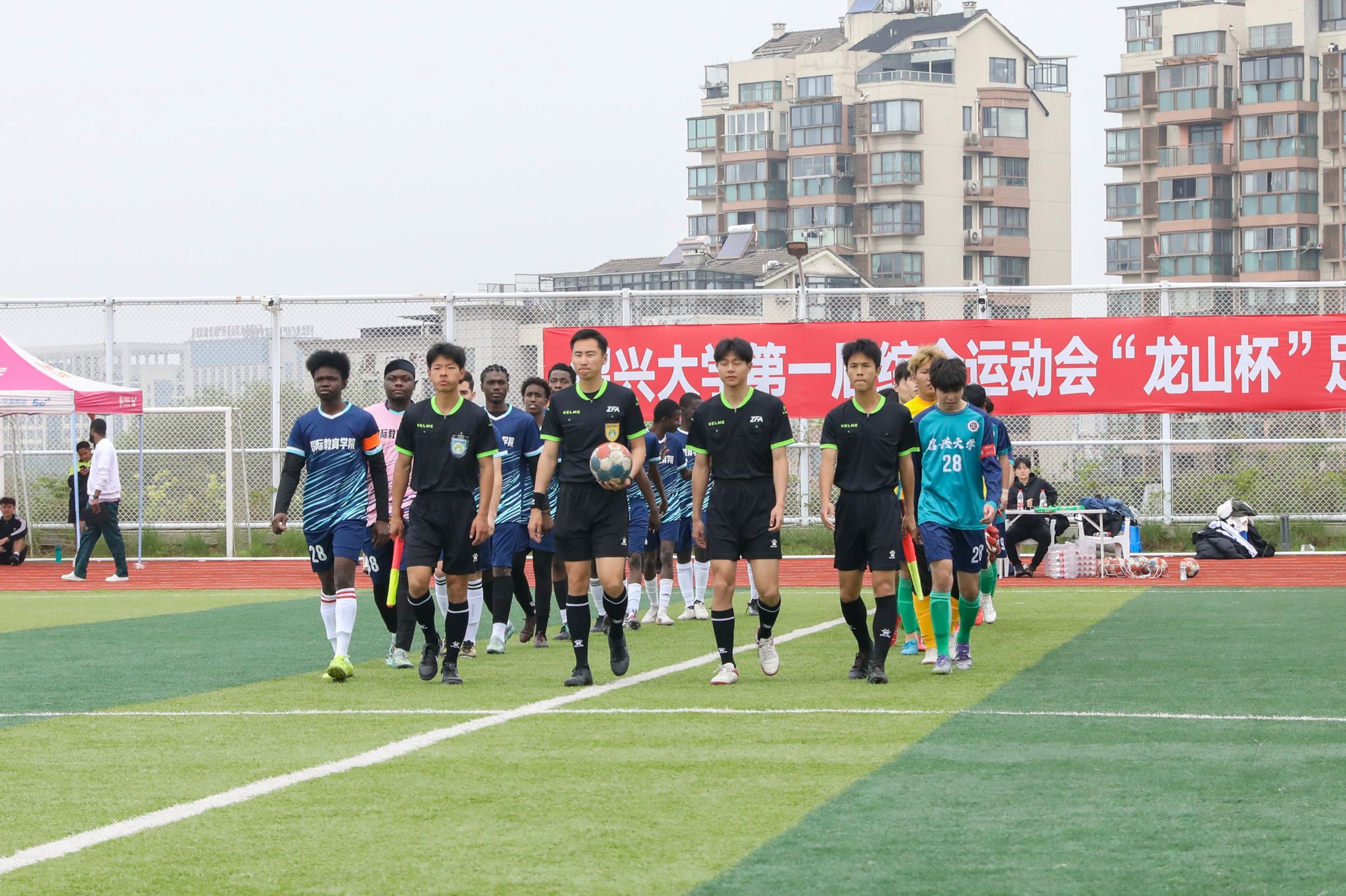 开幕式结束后迎来首场焦点对决,国际教育学院与生命与环境科学学院的较量激烈上演。体育学院国家级裁判汪啸老师昨天刚刚执裁完浙江城市足球联赛嘉兴队和宁波队的比赛,今天马不停蹄又执裁本场比赛,国家级裁判执裁校级比赛这也是比赛的一个亮点。比赛开场后,双方迅速进入状态,生命与环境科学学院率先发起攻势,通过精准的传球并把握机会,开赛7分钟就首先破门。国际教育学院积极组织反击,多次制造威胁并逐渐掌握了场上主动,最终经过90分钟的鏖战,国际教育学院凭借出色的团队配合与进攻效率,以4:1战胜生命与环境科学学院,展现了昂扬的竞技风采。比赛不仅展现了球员们的精湛球技与团队协作,更体现了学子昂扬向上的精神风貌,场上激烈角逐,场下掌声不断,共同营造了浓厚的校园体育氛围。
