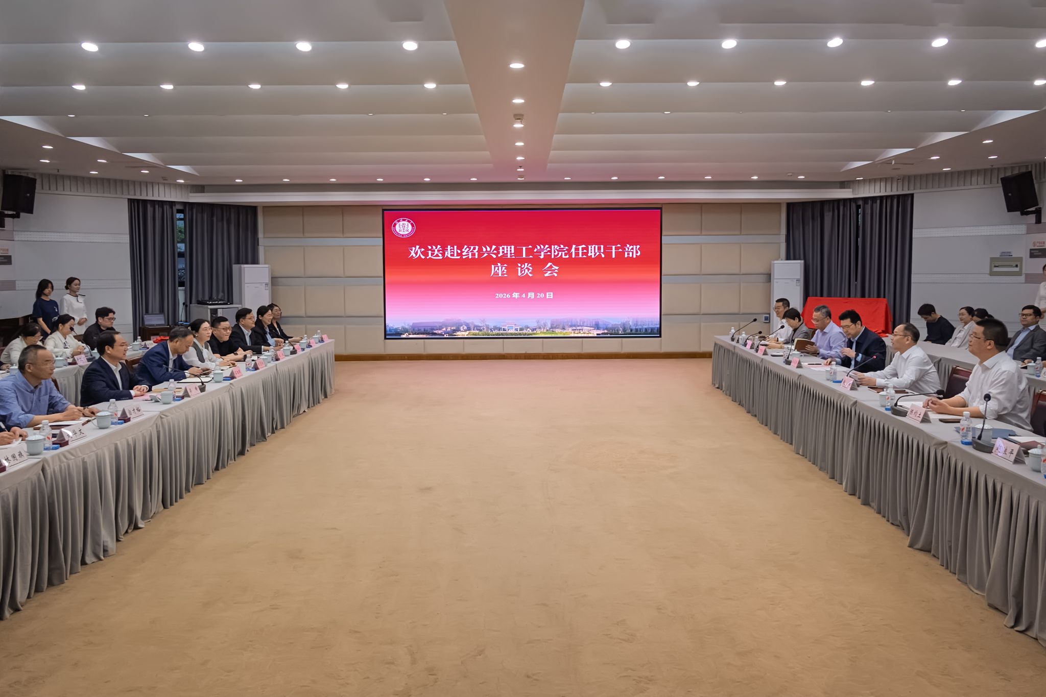 4月20日下午,学校举行座谈会,欢送赴绍兴理工学院任职干部。学校党委书记崔凤军、校长赵阳、校领导班子全体成员,绍兴理工学院党委副书记梁瑜和赴绍兴理工学院任职干部出席会议。会议由赵阳主持。
