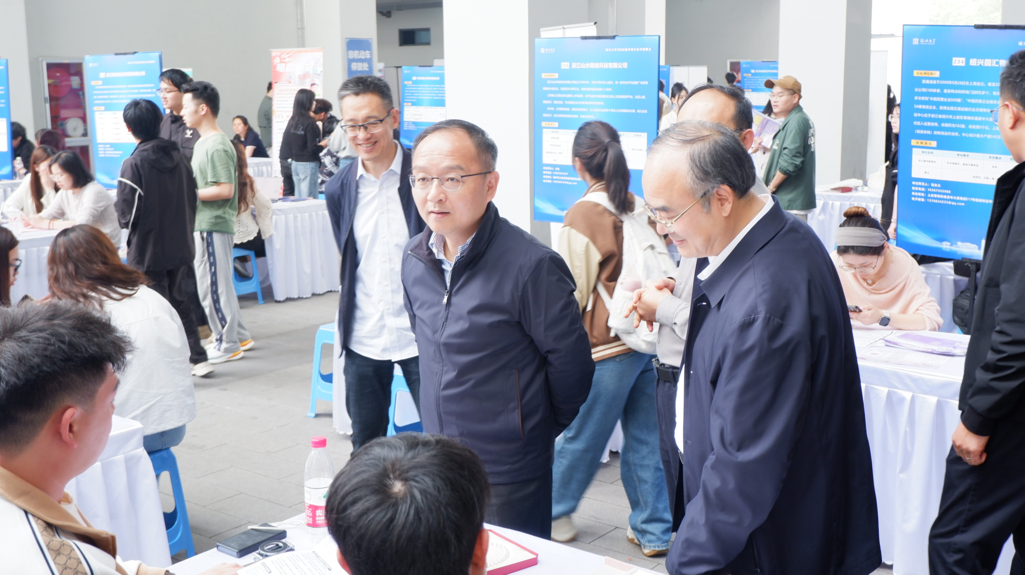 4月25日下午,我校2026届毕业生春季校园综合招聘会在南山校区举行。本次招聘会由绍兴大学主办,学生工作部、绍兴市越城区人力资源和社会保障局承办,绍兴市人才集团协办。校长赵阳、校党委副书记黄坚现场指导,相关职能部门和二级学院负责人参加活动。