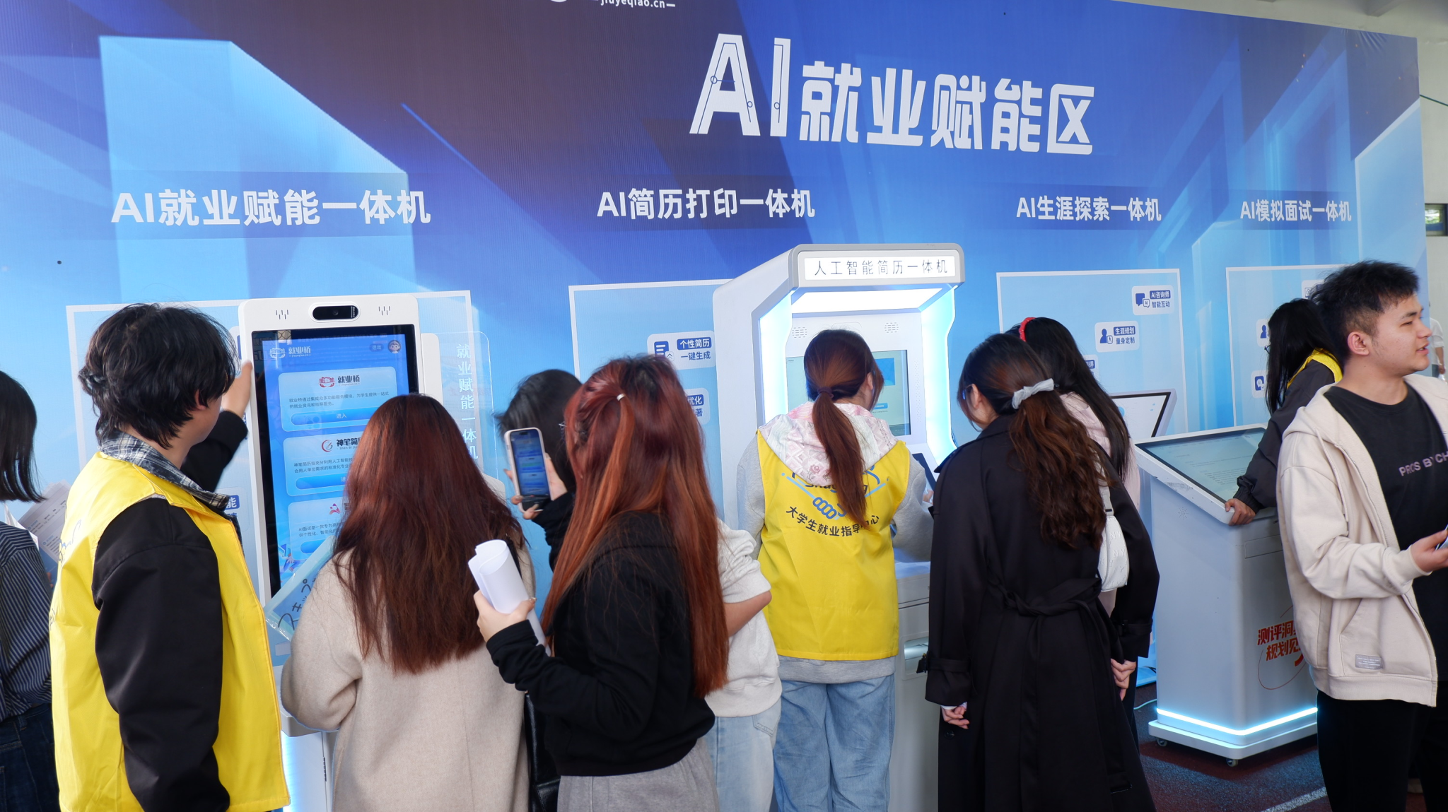 为助力毕业生高效求职,本次招聘会升级就业服务,现场打造AI就业赋能区。区域内集中布设AI就业赋能一体机、AI简历打印一体机、AI生涯探索一体机、AI模拟面试一体机等智能设备,以科技赋能求职全过程。同时,同步推出直播带岗、简历问诊、政策咨询、创业服务等多项举措,全方位助力毕业生高效求职。
