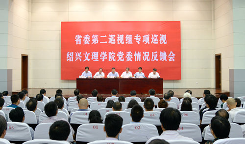 经省委同意,省委第二巡视组向绍兴文理学院党委反馈专项巡视情况。2016年6月17日,省委第二巡视组组长王毅向绍兴文理学院党委书记汪俊昌反馈了巡视情况,省委巡视工作领导小组办公室副主任邱志明传达了省委书记夏宝龙关于巡视工作讲话精神;之后,王毅代表巡视组向绍兴文理学院党委领导班子进行了反馈,邱志明、省委教育工委委员、省教育厅副厅长于永明和绍兴市委常委、纪委书记陈欣对落实巡视反馈意见的整改工作分别提出要求,汪俊昌主持会议并作了表态发言。
