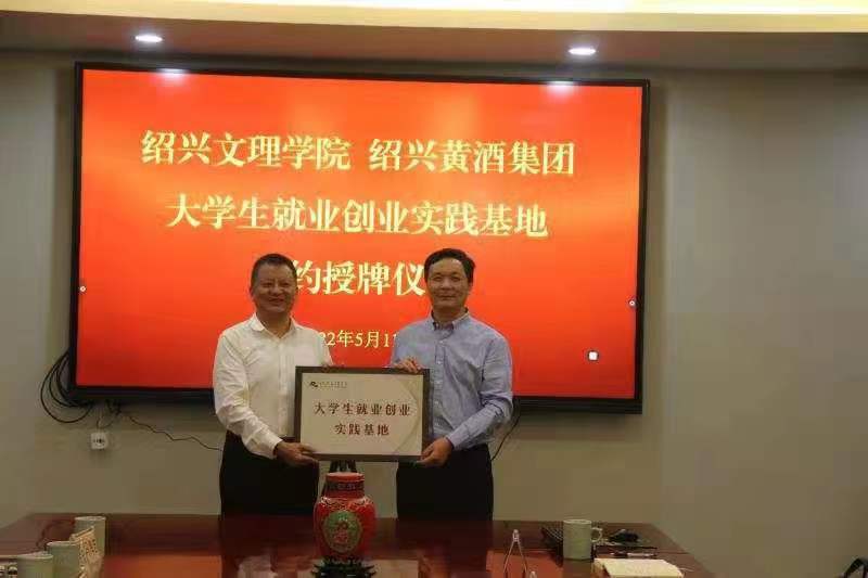 期间,双方就大学生就业创业实践签订校地、校企合作协议。沈赤代表学校为绍兴黄酒集团有限公司、浙江德创环保科技股份有限公司授牌。