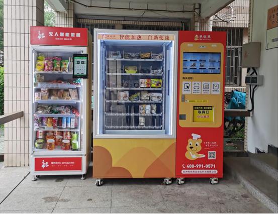 近日,校园里出现的一批红黄色调装满各类美食的售货机,引起了学生们的驻足和尝试——通过学校协调,17台智能美食机和18台智能零食机在我校“落户”。