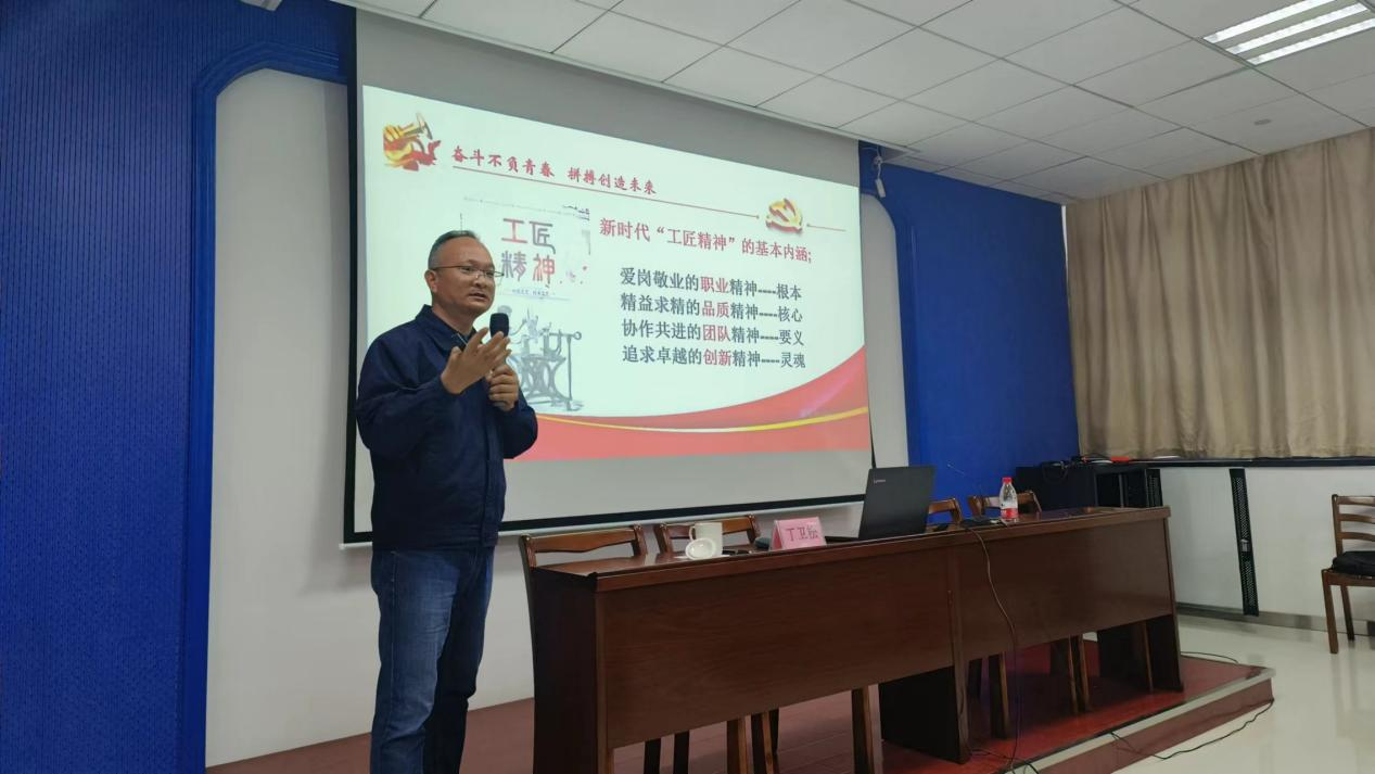 在报告厅,全国技术能手、浙江省劳动模范丁卫松为全体教工党员和“劳动教育”教研室成员作“不忘初心 坚持梦想——我的工匠之路”专题讲座。从一名高考落榜生到全省第一个正高级工程师,从“锅炉维修工”到“焊接状元”,他用人生经历验证着“热爱、坚持、创新”的“大国工匠”养成之路。那些鲜活的事迹、朴素的言辞,给党员同志们带来了强烈的心灵震撼,进行了一场精神洗礼。
