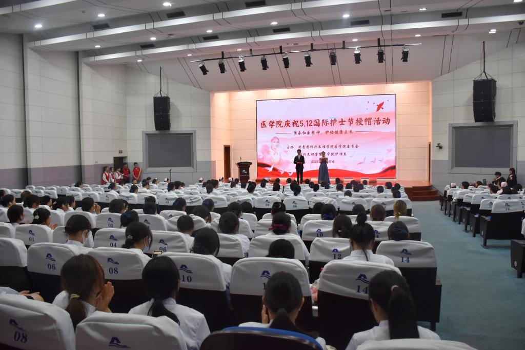 5月10日晚,医学院举行主题为“传承红医精神,护佑健康未来”的5·12国际护士节授帽仪式。副校长柳国庆,校党委委员、医学院院长郭航远,学工部部长宣海江,医学院党政领导班子成员,护理系教师,护理学2020级、2021级、2022级全体学生等参加仪式。