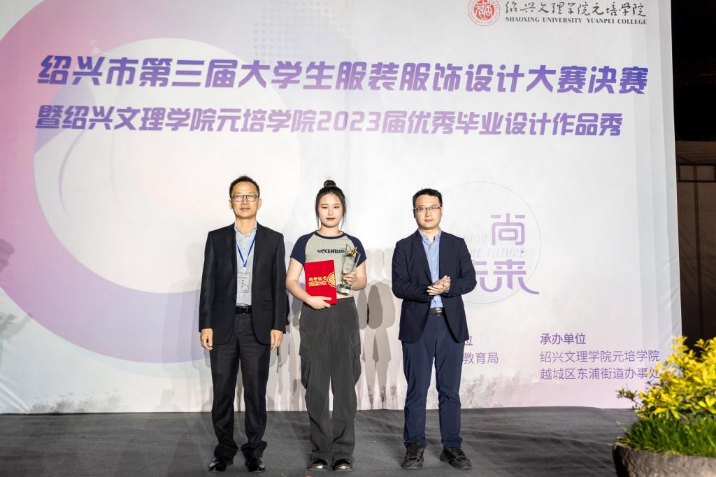 绍兴市第三届大学生服装服饰设计大赛服装造型创意类决赛以“尚·未来”为主题,涵盖服装造型创意设计与服饰品设计两大类,共收到来自绍兴市7所高校提交的315件作品,36件服装造型创意设计作品脱颖而出参加角逐。经由现场行业专家现场综合评审,元培学院获得服饰品设计类一等奖2项,二等奖3项,三等奖11项;服装造型创意设计类二等奖2项,三等奖5项;纺织服装与艺术设计分院周勤和吴欢两位教师获得“优秀指导教师”称号。大赛期间,还举行了绍兴文理学院元培学院2023届服装设计与工程专业、服装与服饰设计专业优秀毕业设计作品秀。