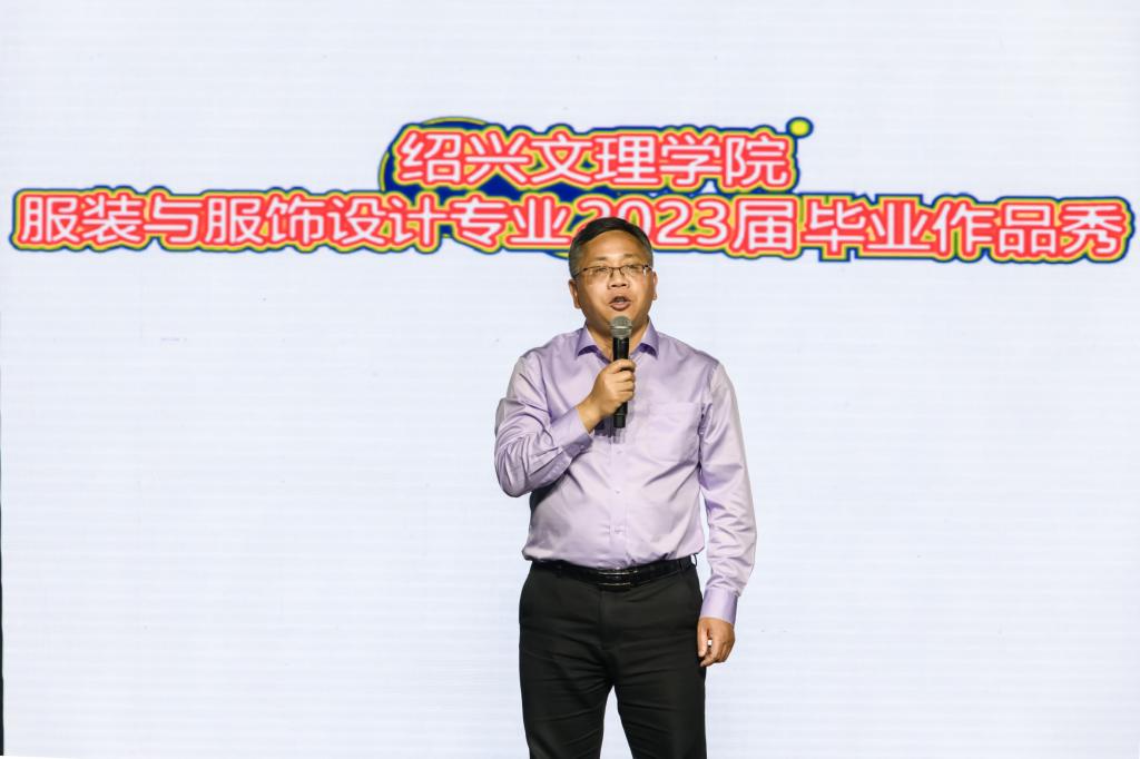 5月14日晚,绍兴文理学院2023届服装与服饰设计专业毕业作品秀在志廉楼前广场举行,副校长、纺织智造现代产业学院理事长柳国庆出席活动并致辞,绍兴市科学技术协会党组成员、副主席袁承华,浙江省纺织行业协会秘书长陈守荣,浙江省纺织工程学会副理事长兼秘书长李启正,绍兴长迈纺织品有限公司、绍兴凯奇纺织服饰有限公司、绍兴市悦达泳装服饰有限公司等纺织智造现代产业学院理事成员单位代表,学校相关职能部门负责人、纺织服装学院全体党政班子成员及师生代表300余人现场观看。