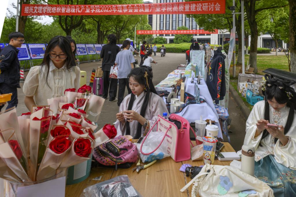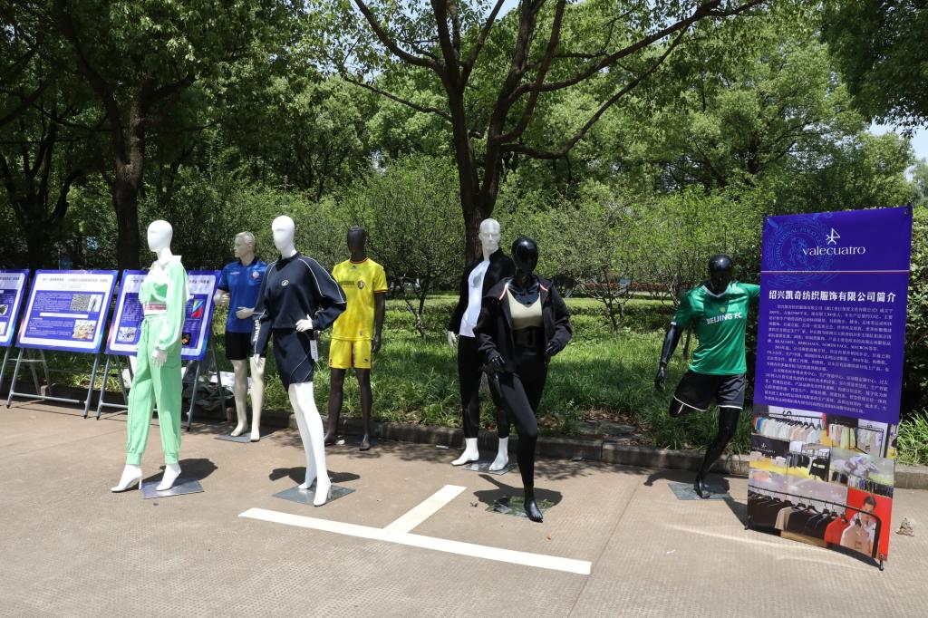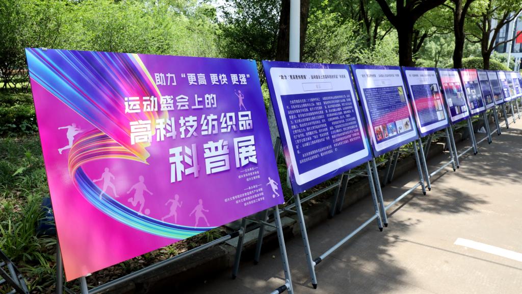 中式旗袍襟口结合西式开衩裙摆,配以亚运色彩“虹韵紫、月桂黄、水墨白、湖山绿”,结合‘西湖时代’到‘钱江时代’的融合图案以及本土的面料、织造、晕染等设计手法,展现出大国风采以及独特的杭州之美……5月14日,由绍兴市科学技术协会、绍兴文理学院主办,绍兴文理学院纺织智造现代产业学院、纺织服装学院、绍兴市纺织工程学会联合承办的“助力‘更高更快更强’——运动盛会上的高科技纺织品科普展”在绍兴文理学院志廉楼前展出,现场吸引大批师生的驻足观看。