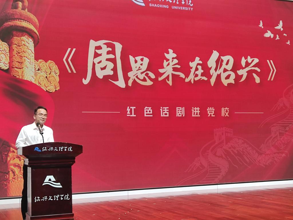 话剧《周恩来在绍兴》以周恩来1939年回绍兴视察抗日工作和宣传抗日主张为主线展开叙事。用舞台剧的形式向当代大学生生动讲述了周恩来总理在绍兴奋斗、战斗、生活的革命场景,让观众重温那一段刻骨铭心的岁月。话剧《周恩来在绍兴》在舞台上的精彩演绎,不仅呈现了可亲、可敬、可感的周恩来的形象,让在校大学生直观了解了这段可歌可泣的抗战史,更重要的是向青年传递了绍兴精神和抗战精神,对青年一代发扬爱国主义精神和继承革命传统起到了良好的促进作用。