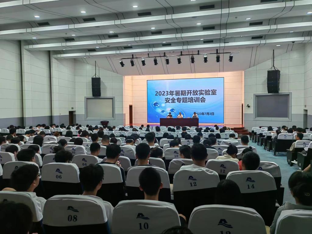 7月3日下午,为贯彻落实浙江省教育厅相关工作部署,切实做师生安全教育培训,2023年暑期开放实验室安全专题培训会在铁城科教馆一楼报告厅举办。实验室管理中心及生命与环境科学学院、化学化工学院、医学院、土木工程学院、数理信息学院等学院的师生共计500余人参加了培训会。