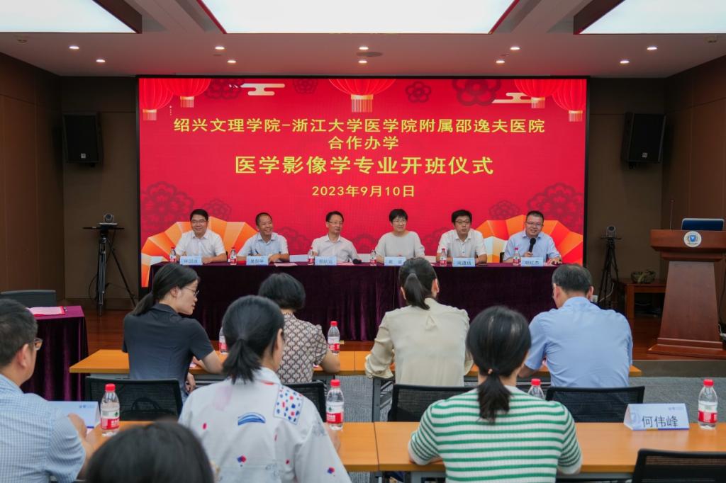 9月10日,绍兴文理学院-浙江大学医学院附属邵逸夫医院合作办学医学影像学专业开班仪式在浙大邵逸夫医院举行。邵逸夫医院副院长黄翯,邵逸夫医院钱塘院区常务副院长周道扬,以及相关科室人员,绍兴文理学院医学院党政领导班子成员、医学影像系、教研科、学生科、医教协同办公室和办公室相关人员,医学影像学201班全体学生、部分校友代表共80余人参加开班仪式。仪式由邵逸夫医院放射科主任胡红杰主持。