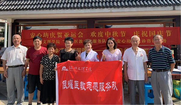 参加义诊咨询与健康宣教等志愿服务的志愿者是来自学校离退休党委第六党支部的洪立昌、徐杏根、蒋月琴、阮萍、黄丹文、王建华同志;学校附属医院党委离退休职工第一党支部的周武强、周庆珍同志,离退休职工第二党支部的石夏莹同志;还有学校资产经营公司司法鉴定中心党支部的张巧英同志。尤其是服务队顾问、年已88岁的洪立昌高级讲师,诚恳向服务队请求、主动要求参加本次中秋与国庆佳节前的志愿服务,为“银耀医教志愿服务队”的党员志愿者树立了榜样。