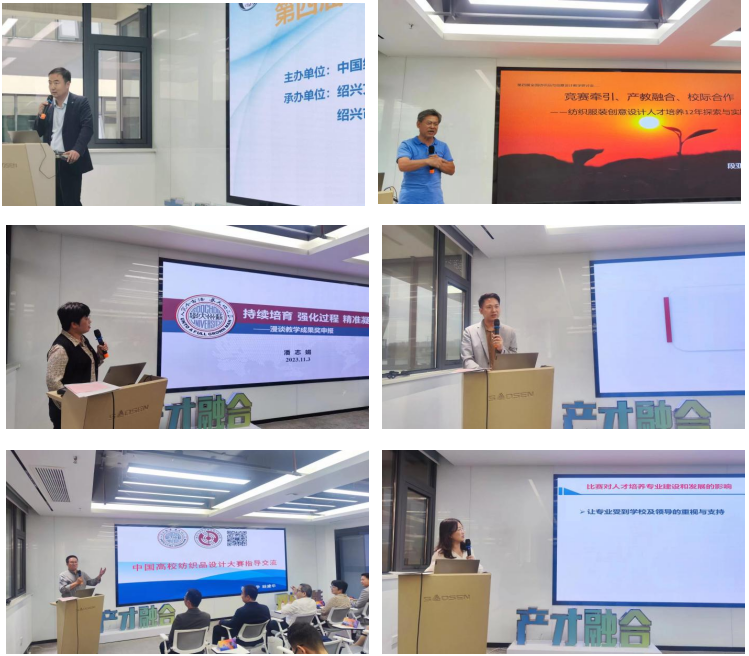 中国纺织服装教育学会副会长纪晓峰主持研讨会。绍兴文理学院纺织服装学院段亚峰教授,苏州大学学科建设与发展规划处处长、纺织与服装工程学院潘志娟教授,智慧树首席顾问、课程总监孙大兵分别作了题为“竞赛牵引、产教融合、一二课堂联动——纺织服装创意设计人才培养15年探索”、“持续培育 强化过程 精准凝练——漫谈教学成果奖申报”和“课程与专业知识图谱建设实践及应用”的专题报告。来自苏州大学纺织与服装工程学院眭建华教授、广西科技大学生物与化学工程学院蒋芳副教授分别就各自单位参与中国高校纺织品设计大赛的先进经验以及参与竞赛在人才培养中发挥的重要作用做了交流与分享。