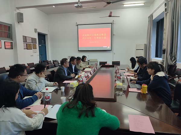 陈惠简要介绍了浙报绍兴分社基本情况以及近年来在党建方面开展的特色活动,表示双方要在时政进校园、浙江新闻专栏和视频宣传、潮新闻等契合高校校园文化的新闻传播方面加强合作,同时,搭建学校、媒体、企业三方相辅相成的宣传平台,发挥新闻宣传对学院事业发展的助推作用。