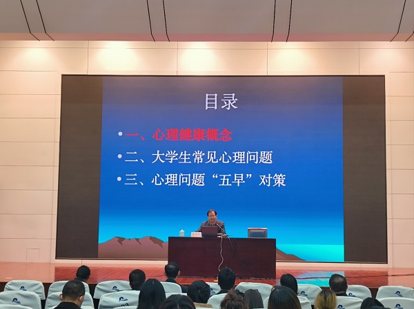 签约仪式结束后,钱建军作《大学生心理问题的识别与应对》的专题讲座。从“心理健康概念、大学生常见心理问题、心理问题‘五早’对策”三个方面进行了详细的讲解。通过常见心理疾病的症状举例,并结合临床经验,教授大家如何识别和应对心理问题,以提高心理健康知识水平。与会师生纷纷表示,此次讲座专业深刻、生动有趣、方法灵活,令大家受益匪浅。