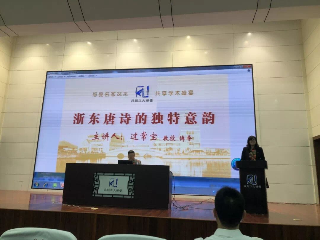 10月24日,北京师范大学过常宝教授做客风则江大讲堂,作题为“浙东唐诗的独特意蕴”的专题讲座。我校师生参加了此次讲座。