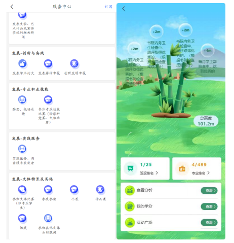 绍兴文理学院“数智评价”应用用客观、具体的量化数据对学生全成长周期“相关关系”现象进行定量描述和刻画,以时间序列的动态数据实现过程评价,以同项纵向的数据分析实现增值评价,以多层面多视角的育人场景量化数据实现综合评价,以人机交互与画像感知实现评价的师生协同,力求全面描述学生的思想变化、素养形成过程以及教育教学的变化过程或发展趋势,对德育评价、学业评价、美育、体育、劳动教育评价起到调节功能。相比传统综合素质评价工作,具有全员性、全程性、全面性、实时性、可视性五大核心优势。