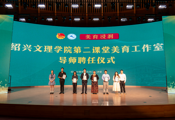 活动现场举行了学校第二课堂美育工作室导师聘任仪式。活动通过创新形式以学生为主体,由社团管理中心、大学生艺术团的同学为代表,向校内外美育导师送上了聘书。现场聘任中国国家话剧院导演谢可、蔡元培艺术与设计学院公共艺术教研室主任张海、蔡元培艺术与设计学院公共艺术教研室副主任张昀瞳、蔡元培艺术与设计学院声乐与表演课程教师李云、鲁迅人文学院教师卓光平、兰亭书法艺术学院教师丁诗薇等6位校内外教师为第二课堂美育工作室导师,他们将在美育浸润行动中,发挥各自领域专业水准,指导学生以更高质量投入到美育实践活动中。