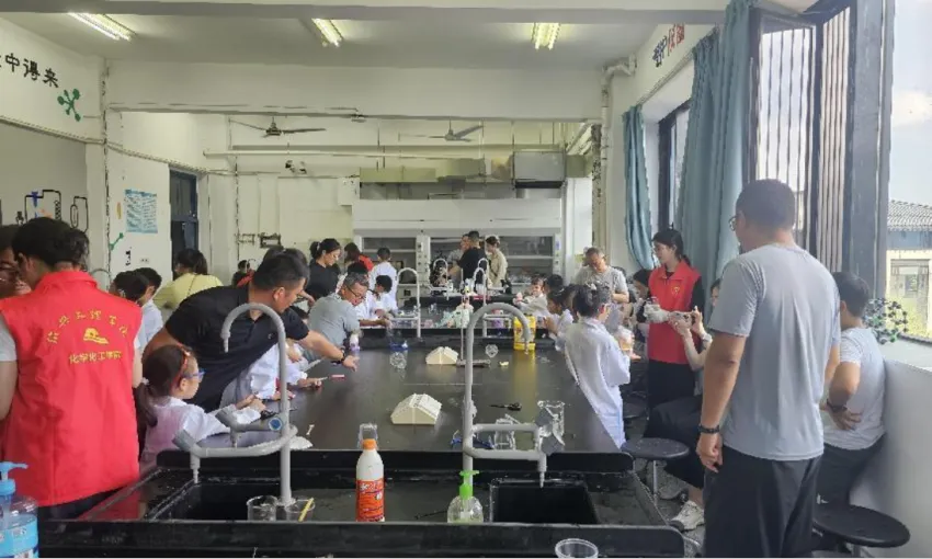 5月26日下午,我校工会和化学化工学院共同开展了“乐在其'化'学梦,奇趣无穷伴成长”迎六一国际儿童节实验室开放日活动。小朋友们和家长一起来到化学与新材料科普基地实验室,参加趣味亲情实验课活动。