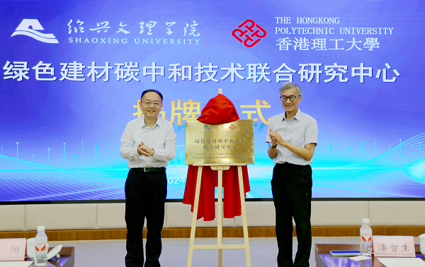 赵阳与潘智生共同为“绍兴文理学院-香港理工大学绿色建材碳中和技术联合研究中心”揭牌。