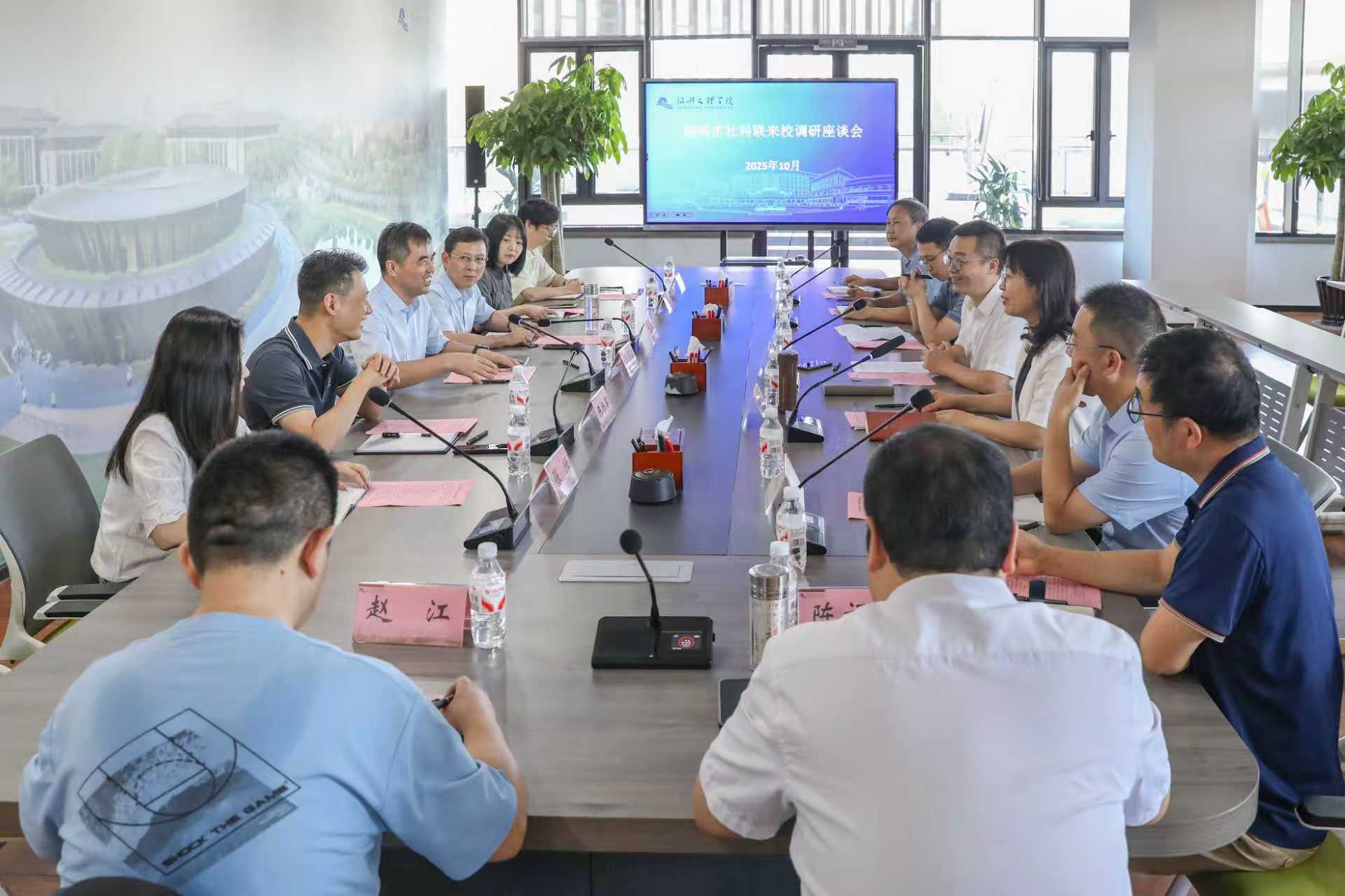 10月11日上午,绍兴市社科联党组书记、主席陈富根一行来校调研座谈。副校长胡云进陪同并出席座谈会,人文社科处处长诸凤娟主持会议,各相关职能部处、二级学院负责人和专家参加座谈。