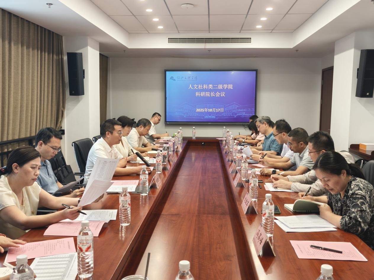 10月17日下午,我校人文社科类科研院长会议在行政楼西321会议室召开。副校长胡云进出席会议,各人文社科类二级学院科研工作负责人及科研秘书、人文社会科学处全体人员参加会议。会议由人文社会科学处处长诸凤娟主持。