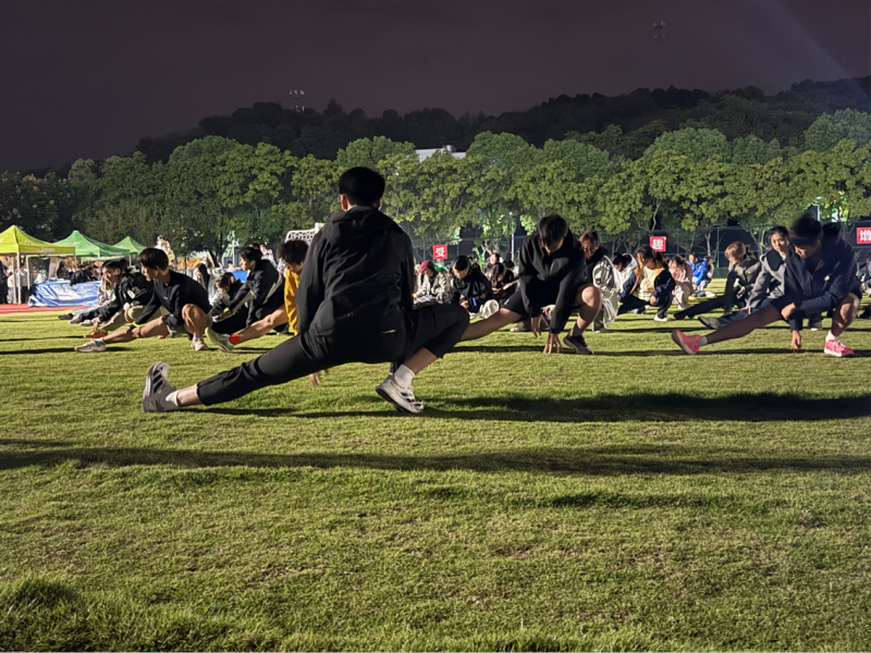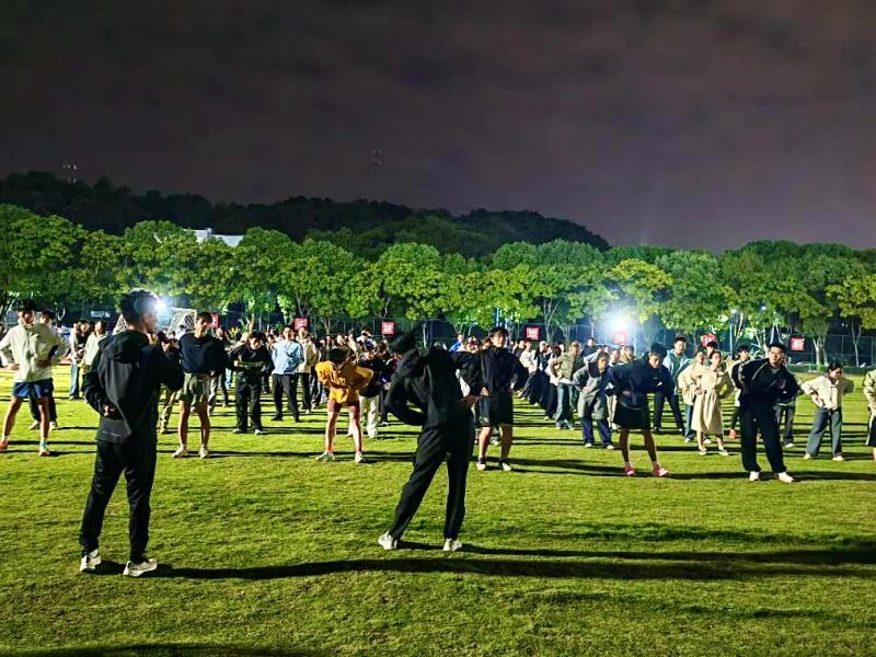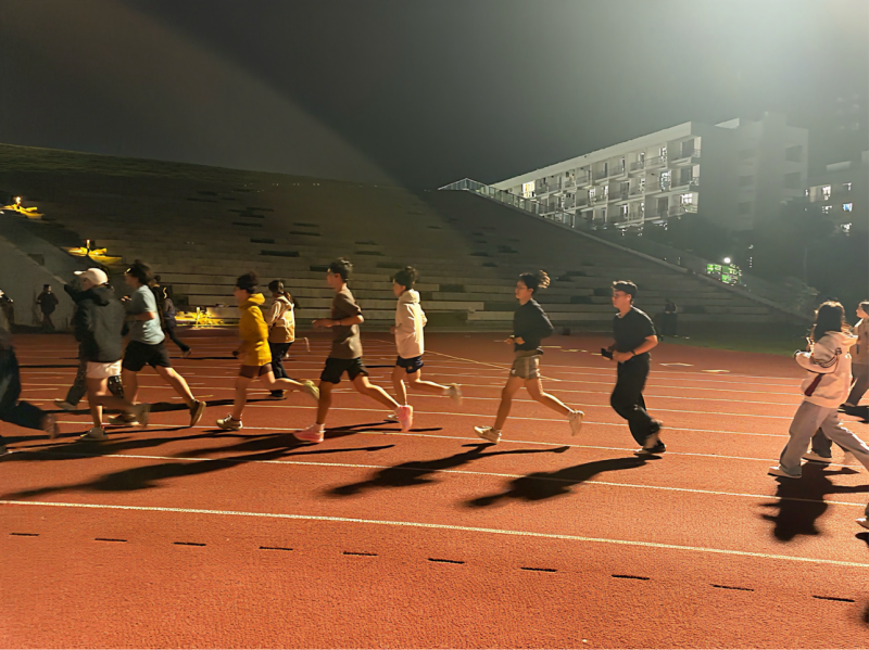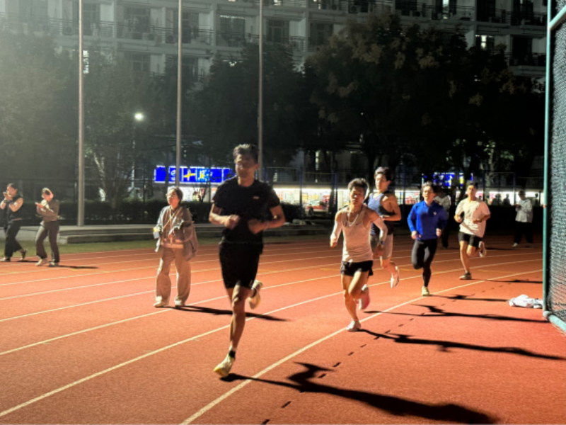 夜色中,同学们踏着激昂旋律奋力奔跑,在跑道上挥洒汗水。手臂摆动、心跳合拍,青春在节奏中尽情燃烧。