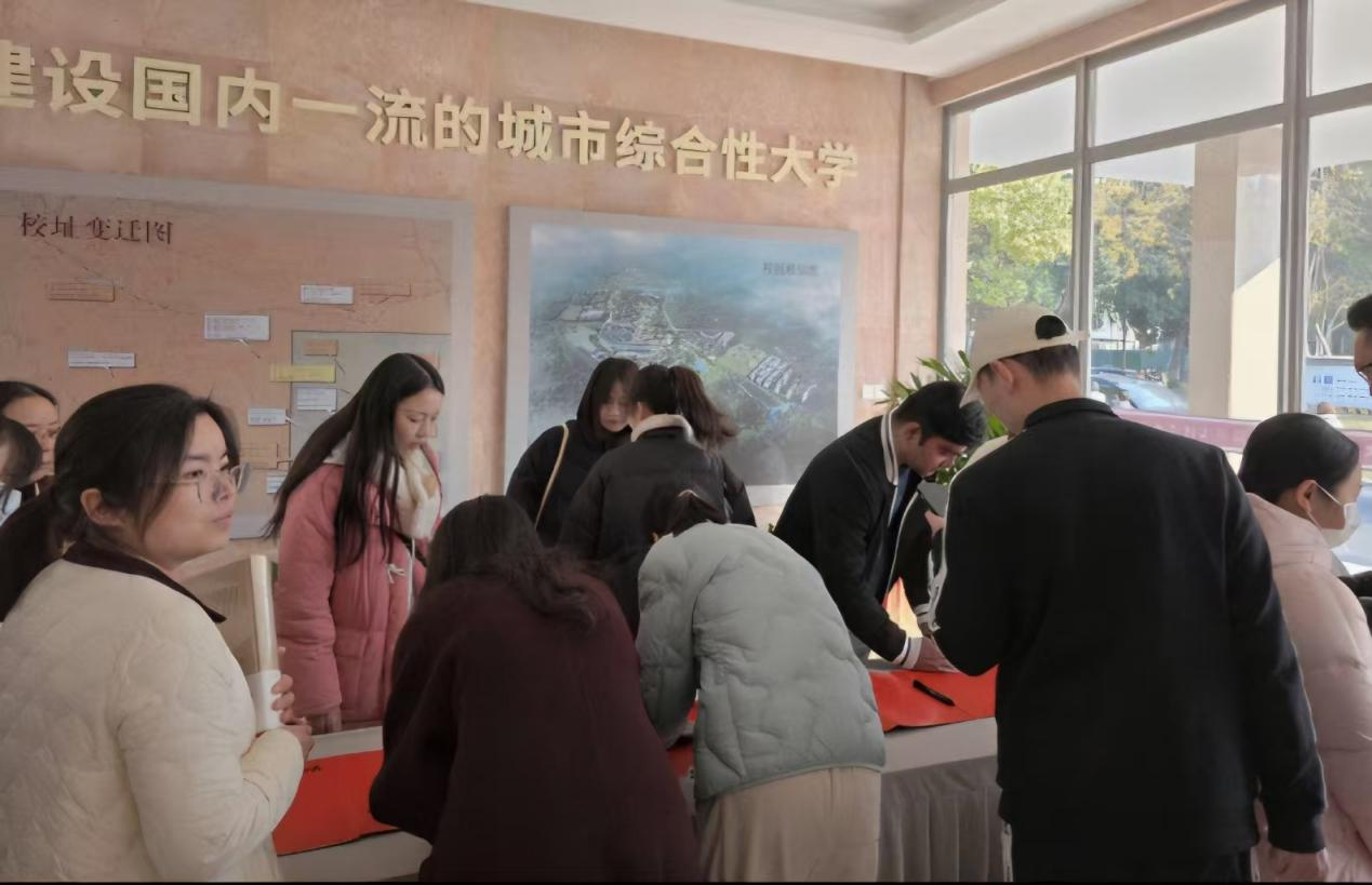 新进教师们纷纷在留言簿上签名留念,写下对学校建设与发展的美好祝愿。