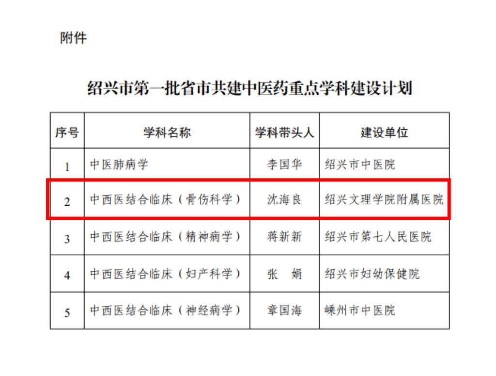 近日,附属医院中西医结合临床(骨伤科学)经严格评审,成功入选第一批“省市共建中医药重点学科建设计划”。这标志着该学科正式纳入省级重点学科建设序列,是医院学科建设取得的重要进展。