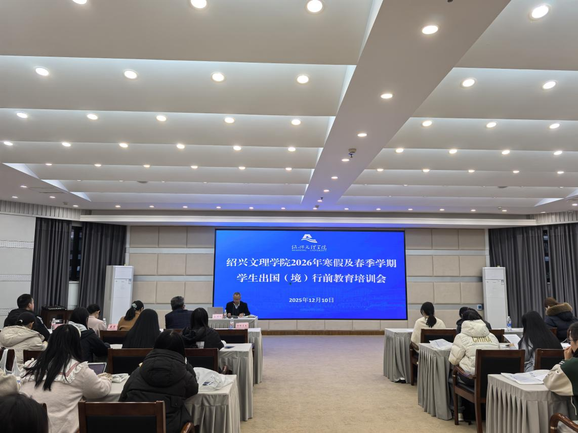 12月10日下午,绍兴市海外领保宣传进高校活动暨绍兴文理学院学生出国(境)行前教育培训会在图书馆一楼报告厅举行。市外办领事签证处、国际交流合作处、安全保卫部相关负责人及约50名即将出国(境)交流学习的学生参加培训。