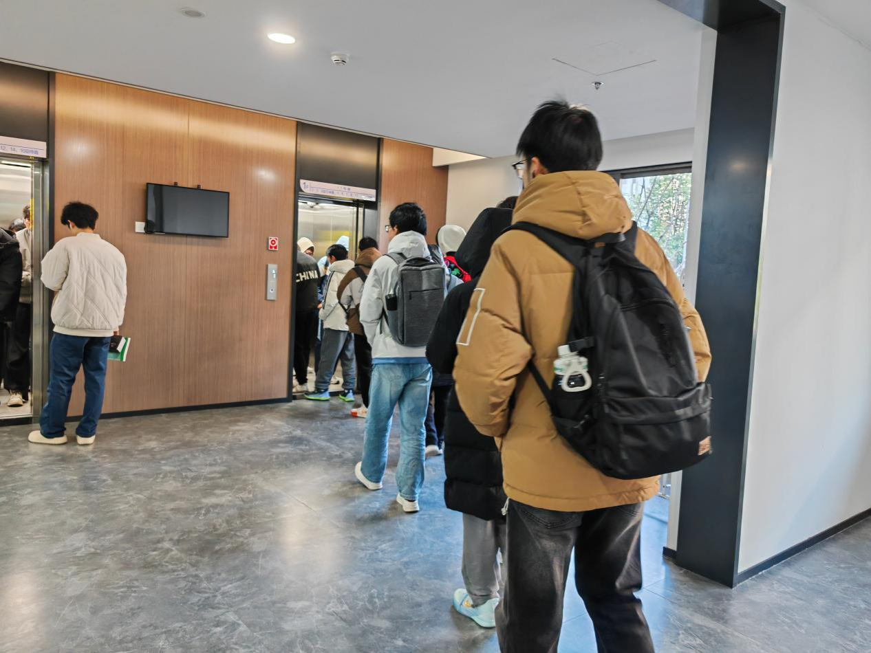 近日,在秀松书院高层公寓楼的课上课下高峰时段,大家看到了一幅文明有序的景象:同学们自觉排成整齐的队伍,安静等候电梯,没有拥挤插队,没有喧哗吵闹,每一趟电梯的停靠与出发都井然有序。这一变化,让原本在高峰时段面临运力紧张的高层公寓,如今通行效率明显提升。