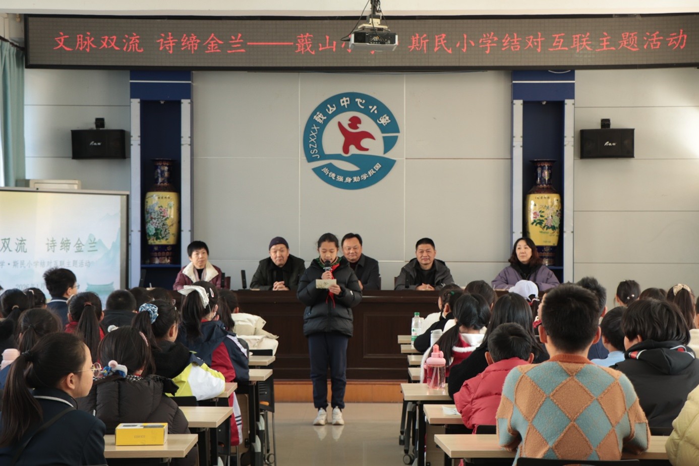1月9日下午,在我校“周一农教授工作站”的积极联络与促成下,绍兴市蕺山小学与诸暨市斯民小学成功开展“文脉双流 诗缔金兰”结对互联主题活动。此次活动不仅是一次跨县域的校际交流,更是越地文脉在新时代少年手中的生动延续与活态传承。