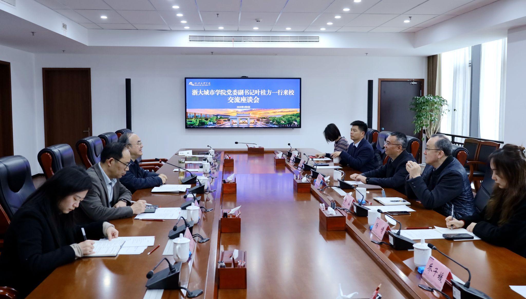3月5日上午,浙大城市学院党委副书记叶桂方,党委委员、宣传部(教师工作部)部长李磊一行来校访问交流。校党委副书记黄坚,党委委员、宣传部部长宋浩成接待并召开座谈会。