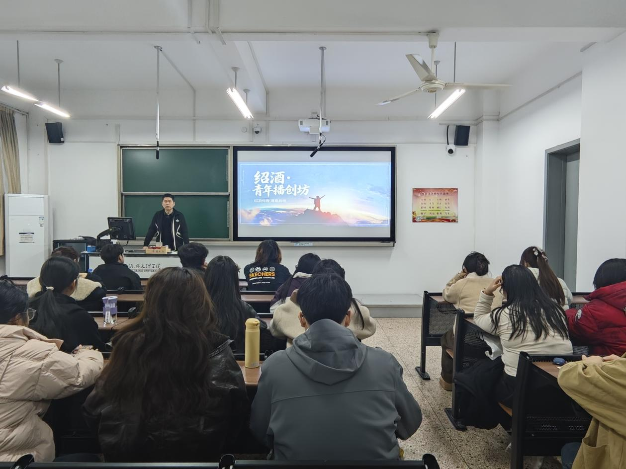 3月22日下午,创新创业学院联合绍兴全域互联网直播技术有限公司共同打造的“绍酒·青年创播坊”电商创业特色班正式开课。立足产教融合、实践育人,特色班以“校城共生”战略为指引,以地方实际产业需求为导向,聚焦绍兴黄酒产业数字化转型,以直播电商新业态为载体,探索“地方特色产业+创业+人才培养”新路径。