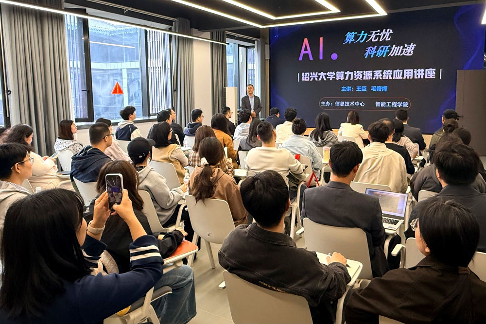 讲座由智能工程学院副院长马海平主持。信息技术中心副主任梁飞鸽,绍兴移动越城分公司副总经理王莉莉,智能工程学院、土木工程学院、纺织科学与工程学院、数理信息学院、化学化工学院、医学院、鲁迅人文学院、外国语学院、商学院(法学院)、蔡元培艺术与设计学院和机关部处等关注算力应用的师生参加讲座。