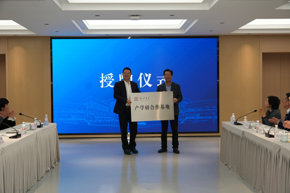 智能工程学院院长吴宗大和嵊州市机械行业协会、浙江双鸟集团、浙江丰利粉碎设备有限公司、浙江盛达机器人有限公司等单位签订产学研合作协议,并向机械硕士学位点校外研究生导师颁发聘书。