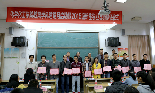 11月17日上午,化学化工学院教风学风建设月启动暨2015级新生学业导师聘任仪式在志廉楼举行。化学化工学院负责人,各学科、专业主任,新生学业导师以及2015级新生等共计200余人参加了本次会议。