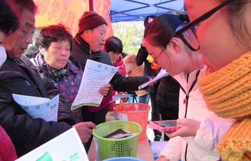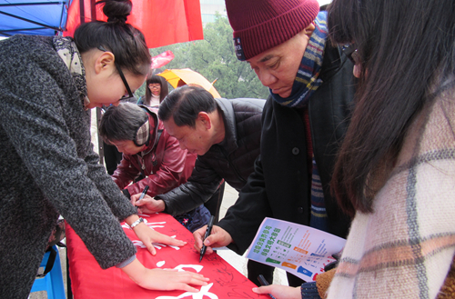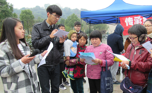 在越王城广场,数理信息学院学生党员围绕“垃圾分类齐参与 绿色文明大家创”这一主题,向市民宣读倡议书、开展主题宣讲,发放相关宣传资料,开展现场签名等活动,同时还通过垃圾投放比赛和知识竞答等形式让市民参与到活动中来,让市民了解垃圾分类的意义和相关知识,在生活中努力践行绿色发展理念,共创文明美丽绍兴。活动得到市民们的积极响应和参与。