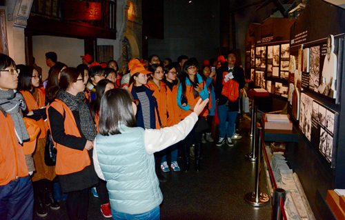 在受降纪念馆,同学们在专业讲解员的陪同下,了解了抗战期间浙江所发生的重大历史事件以及爆发的重要战役,观看了陈列在馆中的日方受降证明书、驻地表、官兵花名册和武器清册等以及一些抗战受降事件的照片。整个展览的主体部分主要分成“侵略暴行”、“不屈抗战”、“胜利欢庆”、“接受投降”、“审判战犯”五个单元。据悉,抗战时期,浙江是被日军攻陷最早、侵略时间最长、受灾最重的省份之一。当时全省77个县(市)中,杭州市和其他37个县被长期占领,但是浙江人民没有屈服,浴血奋战,顽强抵抗,最终取得了抗战胜利。1945年8月15日,日本宣布无条件投降。浙江省富阳县长新乡宋殿村的宋作梅宅院,被指定为中国战区第六受降区,接洽日军投降的地点。9月4日和5日,接受日军投降仪式在宋殿举行。为纪念“宋殿受降”,宋殿村所在的乡取名为受降乡,富阳受降也成为见证浙江人民抗战胜利的重要纪念地。