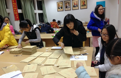 鸿雁寄深情,家书抵万金。近日,建功书院开展了“爱在文理,家书浓情”活动,2015级新生们书写的近500封家书,经过统一整理后寄往全国20余个省。在这岁末寒冬,学子们用家书给亲人带去问候和祝福。