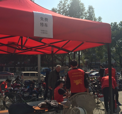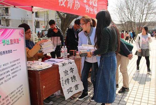为更好地推进双百双进活动,校青年志愿者协会举办首届志愿服务项目大赛,展示了我校阳光助残、关爱小候鸟、节水环保、垃圾分类等志愿服务品牌项目,志愿者们在此次大赛中相互交流、学习提高。大赛邀请到团越城区委、团柯桥区委负责人担任评委,赛后优秀志愿服务项目被认领,做到与社会无缝对接。同时我校开展了校内外的广场志愿服务活动。“捐之以物,予以三月阳”活动得到了众多同学的支持,寝室里的旧物废品捐献给需要帮助的人。我校志愿者还参与了银泰城和越王城广场的“青春暖流”大型广场志愿服务活动,为市民现场提供无偿献血、法律咨询、免费修车、现场书法、手工制品义卖等种类多样、形式丰富的志愿服务。