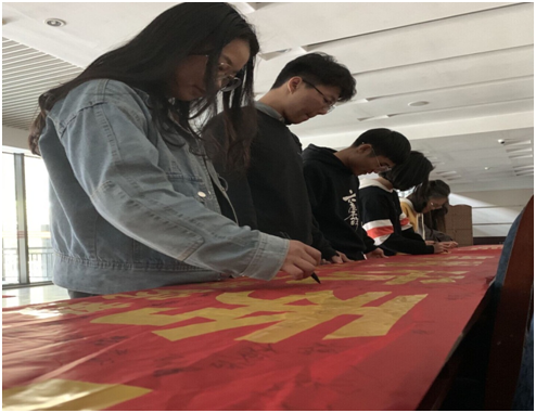 在会场外面,参加会议的全体学生在阅读建设优良学风倡议书后纷纷在活动横幅上签上了自己的姓名。10月21日—25日,学院也通过召开年级大会的形式对全院学生进行了学风建设动员,重申了各项规章制度。